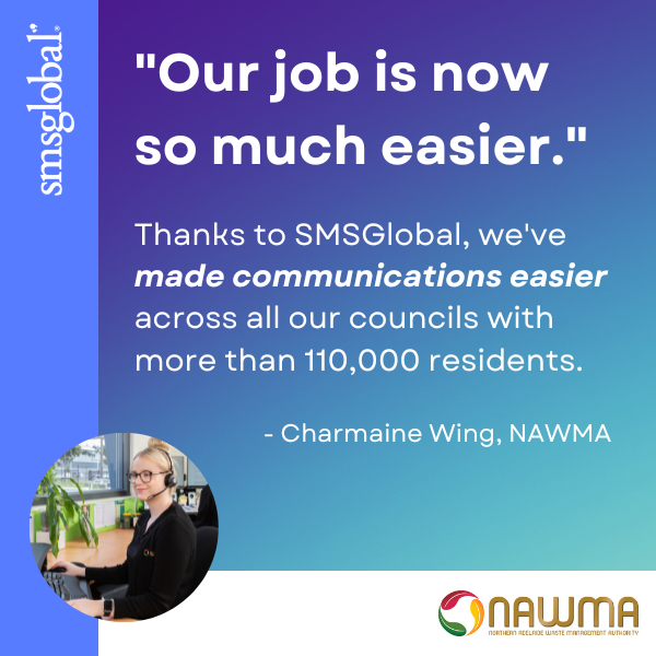 NAWMA chose SMSGlobal as their preferred bulk SMS provider to send SMS communications such as service reminders. Since sending SMS with SMSGlobal, NAWMA has saved time, enabling staff to work on other priority projects.